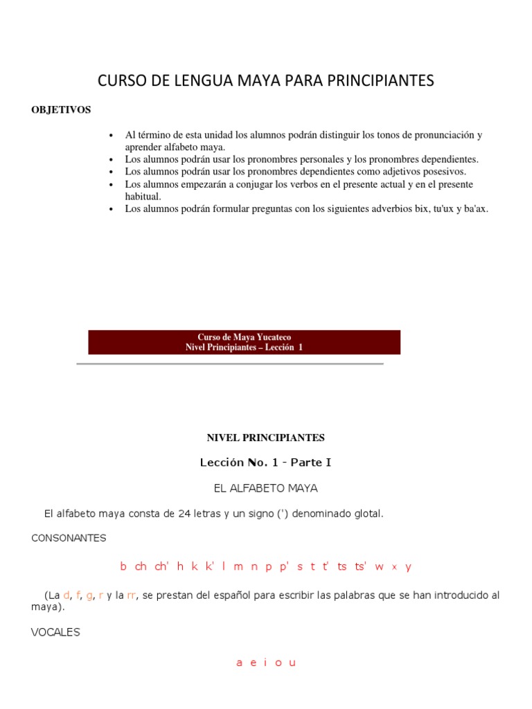 Curso De Maya Yucateco Principiantes Pdf Verbo Plural