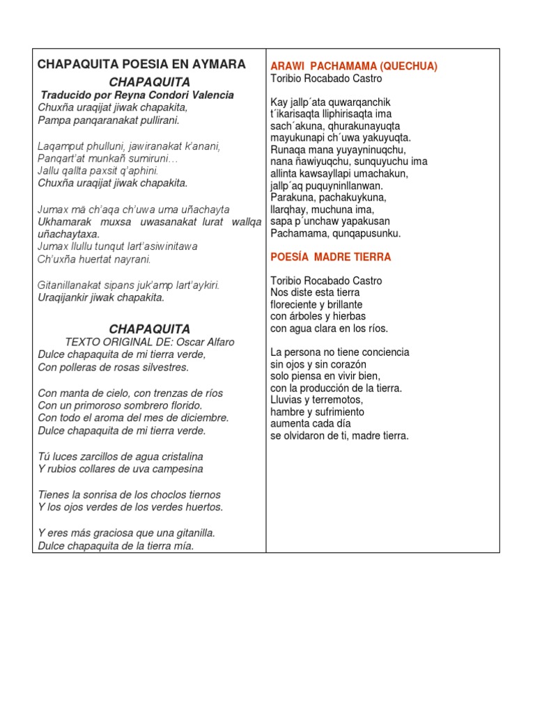Poemas En Quechua Y Su Traduccion Pdf Naturaleza